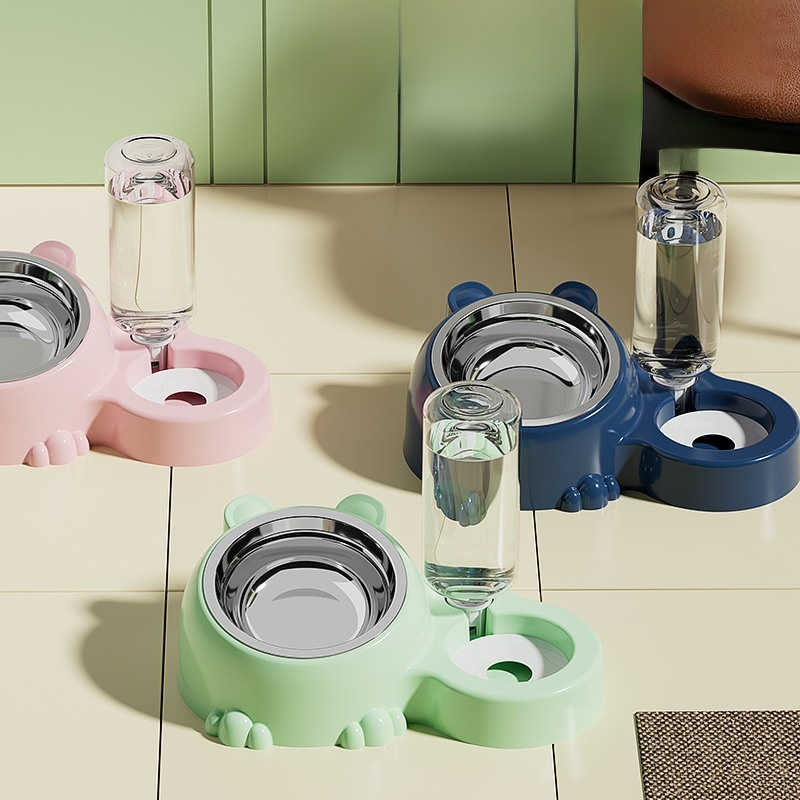 Double Bowl Pet Water and Food Bowl for Cats and Dogs
